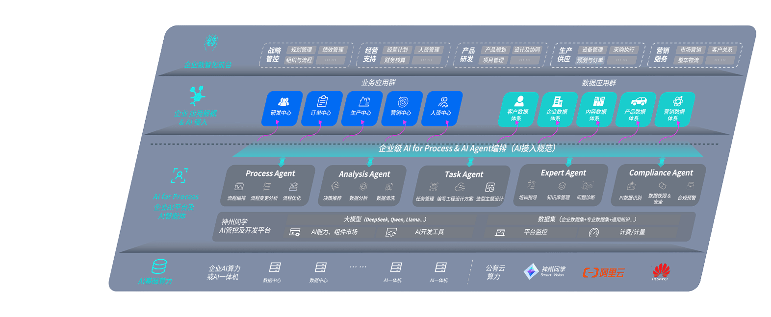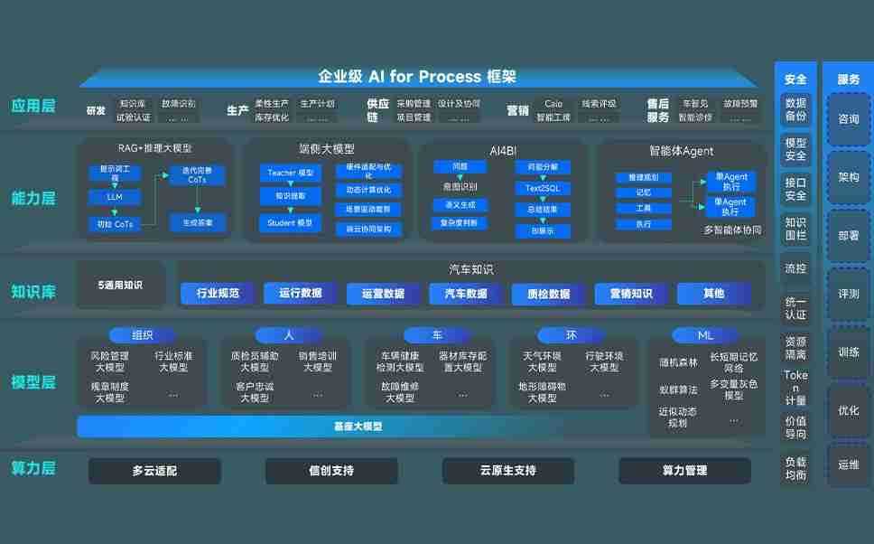 端到端的一站式AI工作空间深度融合了从企业战略规划到日常经营的全流程业务板块,,,,定向解决车企内部领域多、、部门多、、、、链条长、、场景碎片化等难题,,,,支持车企快速构建以AI为核心的生产力写作体系,,,实现任务执行与AI能力的无缝集成与交互