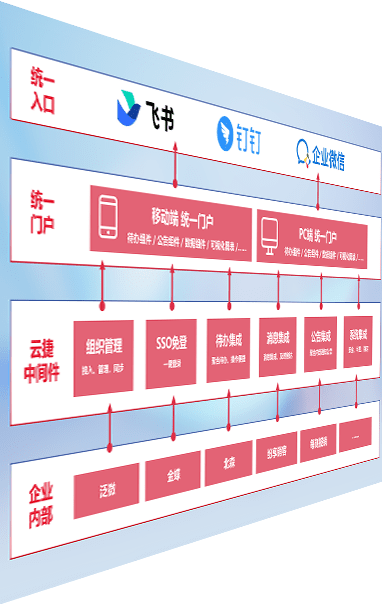 对协作平台提供支持服务,,支持企业应用与协作平台对接,,包含组织同步、、消息集成、、、待办集成等。。。。支持目前主流的协作平台:钉钉、、、、企微和飞书。。