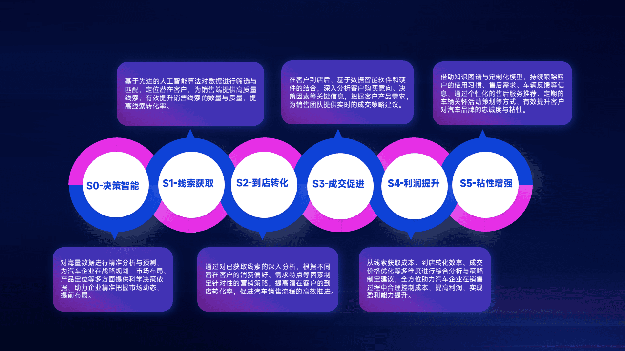 通过拓宽潜在客户来源、、、优化线索分配并提高到店转化率,,,以增强销售效率。。。同时,,,利用线索数据不断优化分析模型,,有效提升转化率,,扩大营销影响力。。。